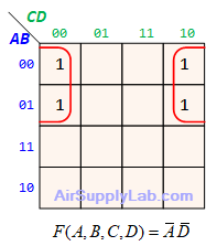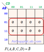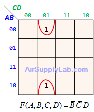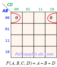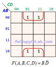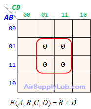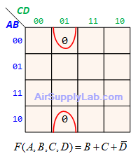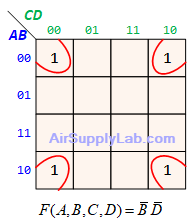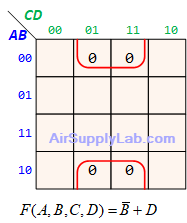 - $(\overline A + B + \overline D ) \cdot (\overline A + \overline B + \overline C ) \cdot (\overline A + \overline B + C) \cdot (\overline B + C + \overline D )$