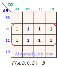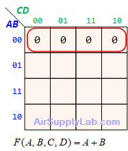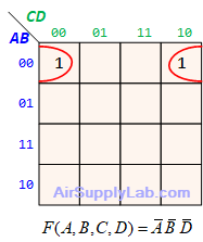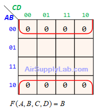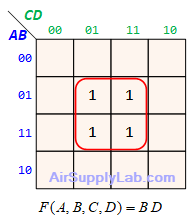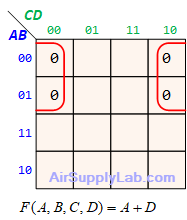 - Look for adjacent groups of 1s (for SOP form) or 0s (for POS form) in the map. Make each rectangle groups as large as possible and must contain a number of cells that have a power of 2 (e.g., 1, 2, 4, 8, ...) to minimize the number of literals in each term.