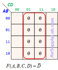 - F(A, B, C, D) = ∏ M(1, 3, 6, 9, 11, 12, 14)