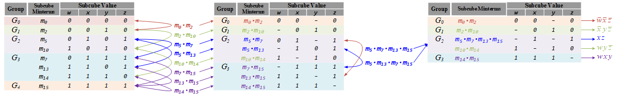 - Combine Minterms: Compare minterms within adjacent groups. If two minterms differ by only one bit, they can be combined into a term with a dash (-) in the differing position, indicating that the particular bit can be either 0 or 1. This process of combination reduces the complexity of the expression.