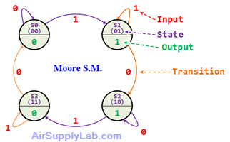 State Diagram for Moore State Machine- Outputs depend on the current state only.