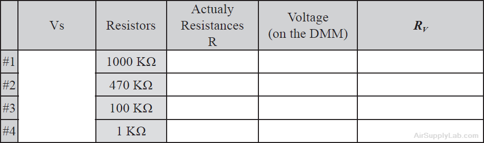 - From these readings, use voltage division to calculate RV, the equivalent internal resistance of the voltmeter.
