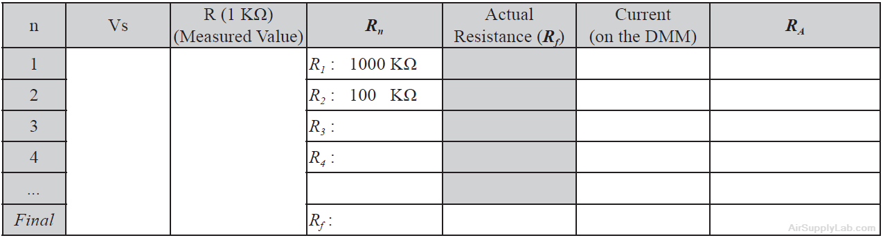 - Adjust Rn to 100 kΩ. In your table, record the resistance Rn and the current indicated by the ammeter.