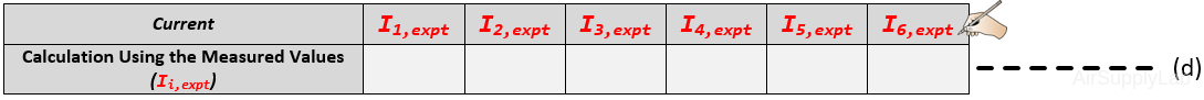Does the percentage error obtained seem reasonable in view of the accuracy of the DMM? - From the branch, voltages calculate the branch currents. Using the values in step 3 table (C) to calculate currents for each branch. Remember to use the actual, and not the nominal resistance values for this calculation. Record your calculation results in the following table.