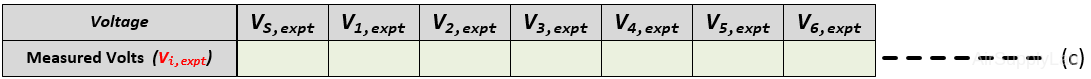 - Verify that Kirchhof's Voltage Law is satisfied for all of the loops in the circuit. From step 3 table (c), do they add (algebraically) to zero for each loop? Calculate the percentage error based on the following equation:
