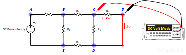 - Replace RL with a short-circuit. Measure the voltage drop across R6 and calculate the short-circuit current from ISC = VR6 / R6.