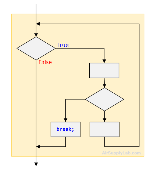 As you can see, the variable stop is used to cancel the two outer loops if some program event occurs. However, a better way to accomplish this is shown below, using a goto: