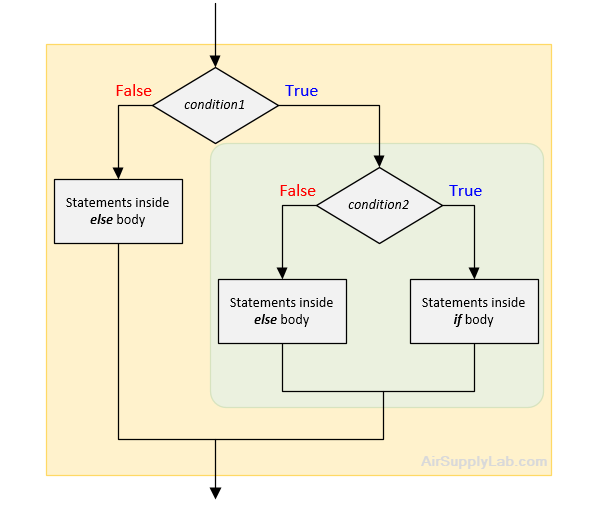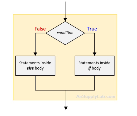 If the condition is evaluated as true, the statements inside the body of if are executed. Otherwise, the statements inside the body of else are executed.