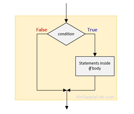 If the condition is evaluated as true, the statements inside the body of if are executed. Otherwise, the statements inside the body of if are skipped.