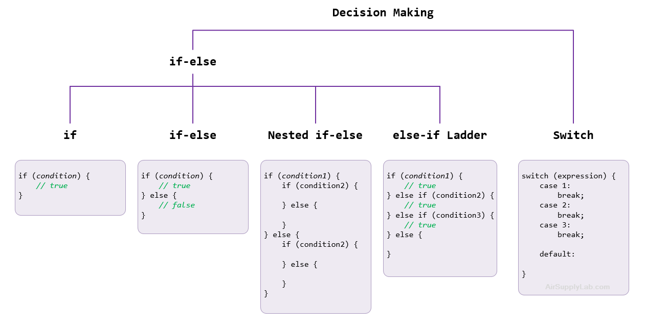 It includes the statements which work on checking the condition of giving expression to execute the code.