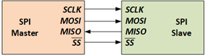 SPI communication is a synchronous, serial, full-duplex protocol in 4-wire mode. Data transfer is driven entirely by the Master, which controls the clock, the transaction timing, and the activation of each Slave device.