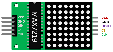 Each LED is addressed at the intersection of a row and a column. Directly driving 64 LEDs requires many pins and careful multiplexing, so the MAX7219 handles the refresh scanning internally.