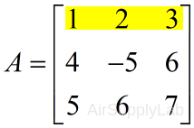 $A = \left[ {\begin{array}{ccccccccccccccc} 1&2&3\\ 4&{ - 5}&6\\ 5&6&7 \end{array}} \right]$