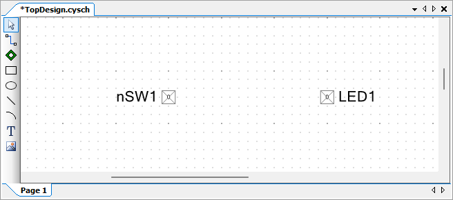 - When the user presses the SW1 switch (connected to nSW1), the LED (connected to LED1) should turn on.