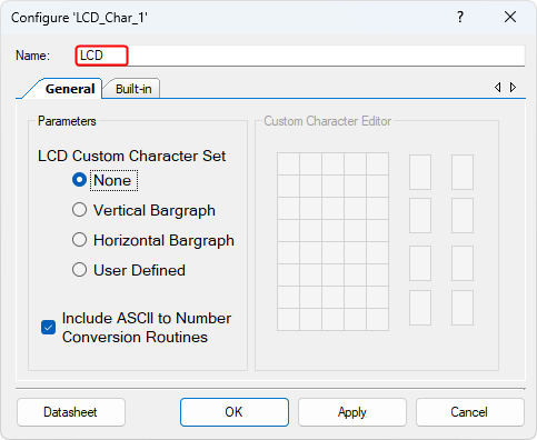 - Config the Character LCD (LCD_Char_1):