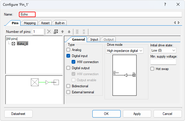 - Config the Digital Input Pin (Pin_1):