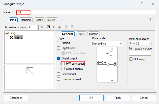 - Config the Digital Output Pin (Pin_2):