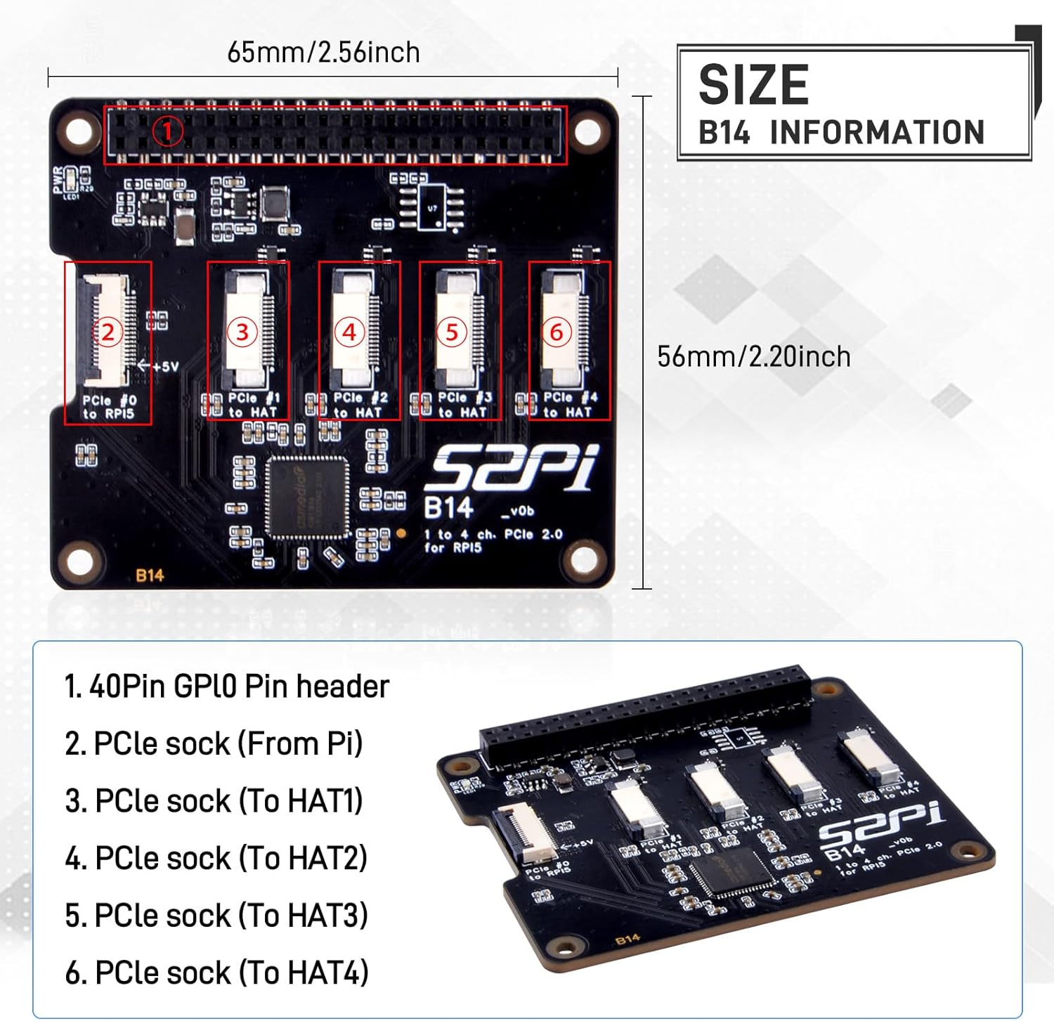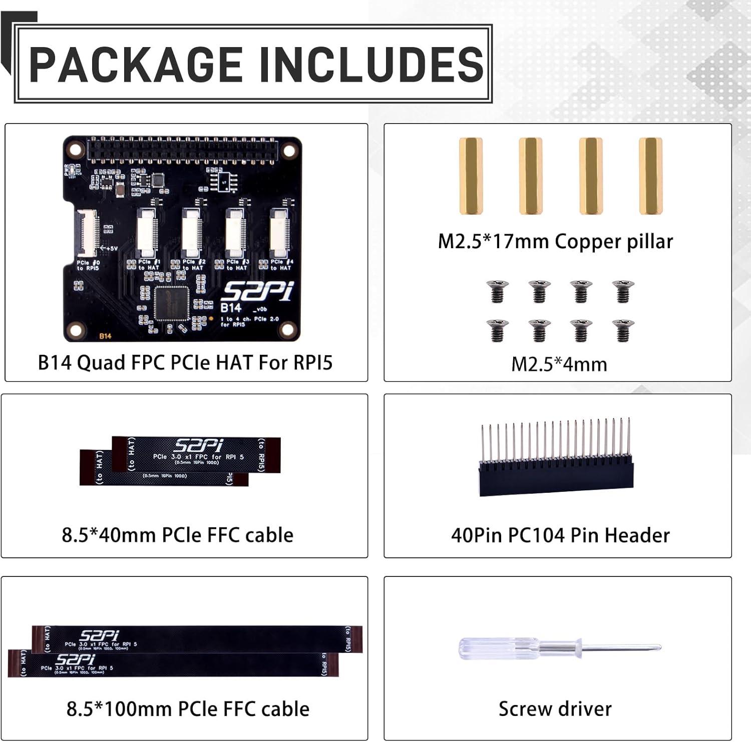 GeeekPi Dual FPC PCIe HAT B12 HAT 1 to 2 PCIe Interface with 40Pin GPIO Pin Header