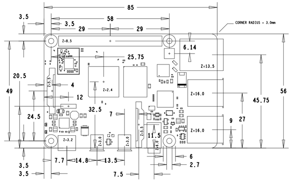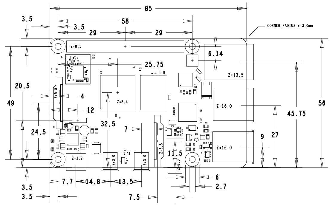 1GB LPDDR2 | Standard (85.60 × 56.5 mm) | Gigabit Ethernet over USB2 Dual-Band 802.11ac WiFi Bluetooth 4.2/BLE |