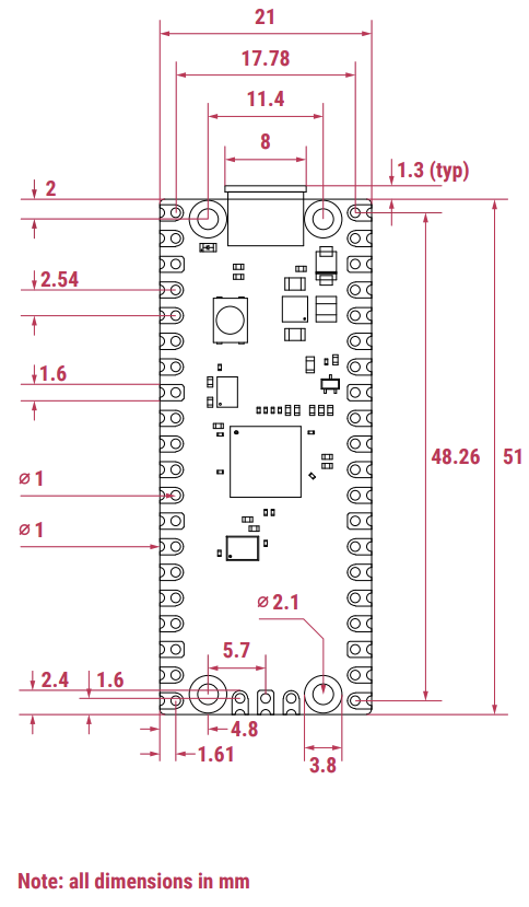 264KB SRAM | Pico (21 × 51 mm) | 40-Pin | 2021 | |||