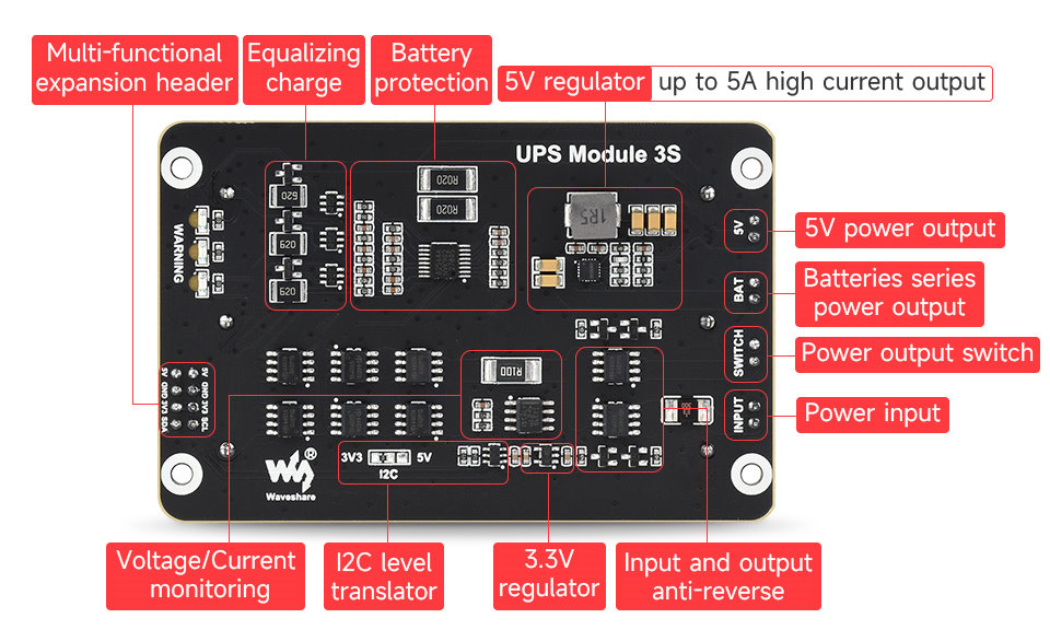 - Stackability: Boards can be stacked to increase output current and extend battery life