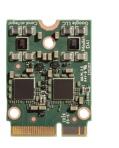 The Coral M.2 Accelerator with Dual Edge TPU integrates two Edge TPU coprocessors into systems via an M.2 E-key interface. Each coprocessor performs 4 trillion operations per second (TOPS) at 2 watts, doubling inference capability to 8 TOPS. It supports high-speed ML inferencing, running models like MobileNet v2 at nearly 400 FPS. The device is compatible with Debian Linux and Windows 10 and supports TensorFlow Lite models. The module measures 22 mm x 30 mm and requires compatible card slots for both TPUs.