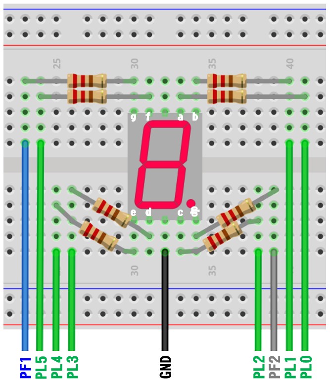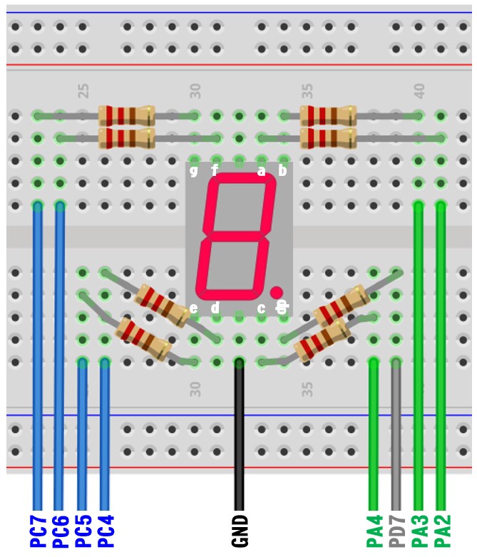 - 'dp.a.b.c.d.e.f.g' encoding: Encode segments a to g to bit 6 to bit 7, with the decimal point (dp) on bit 7.