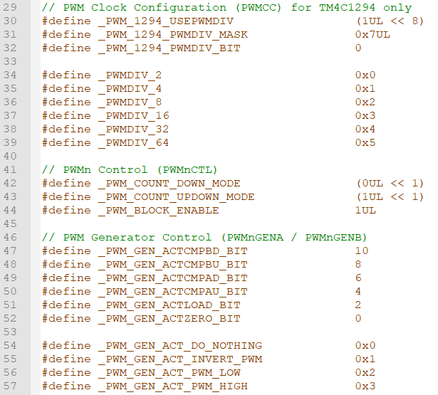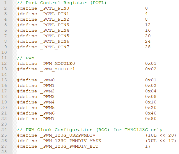 SYSCTL->RCGCPWM = MyDefines.h8 4 2 1 8 4 2 1 7 6 5 4 3 2 1 0 bit PWM