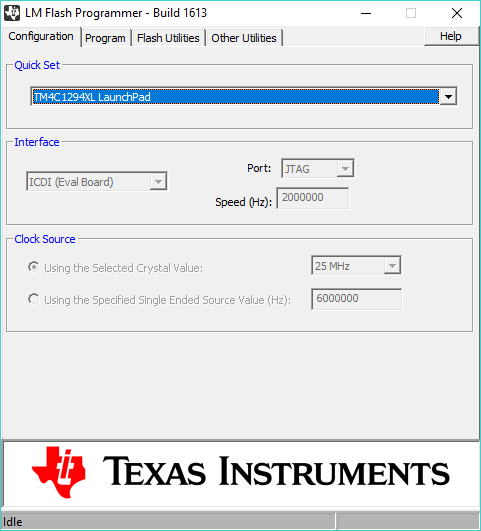 Select TM4C1294XL LaunchPad from the Quick Set pull-down menu under the Configuration tab.
